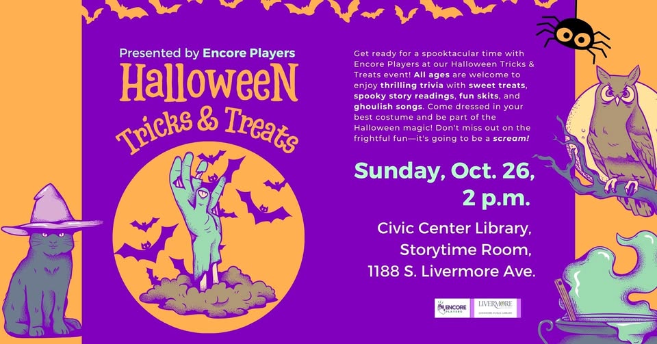 Livermore Library - Civic CenterTricks and Treats - stories, spooky and funny, skits, songs and music - for all ages.